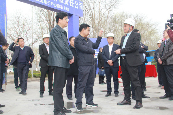2019327日下午,平?jīng)鍪形睍?、市長(zhǎng)王奮彥、市委常委、崆峒區(qū)委書記陳鐸、市政府秘書長(zhǎng)薛曉宏等市委領(lǐng)導(dǎo)及平?jīng)鍪泄I(yè)園區(qū)管委會(huì)主任馬春寧等園區(qū)主要領(lǐng)導(dǎo)一行人蒞臨甘肅振興·天通電子(物流)產(chǎn)業(yè)園項(xiàng)目施工現(xiàn)場(chǎng)指導(dǎo)工作。